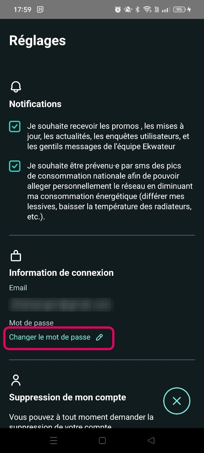 Cliquer sur "Changer le mot de passe"