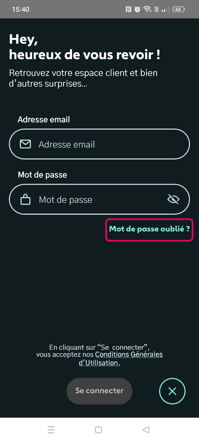 Cliquer sur "Mot de passe oublié"